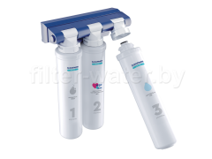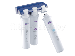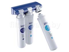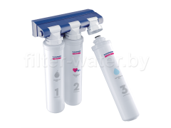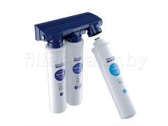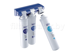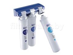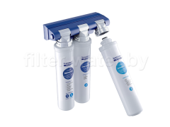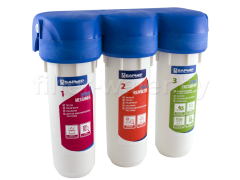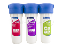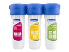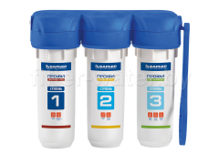 Трехступенчатый проточный фильтр для комплексной очистки воды. Быстрая замена картриджей.