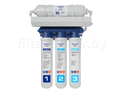 Система обратного осмоса с быстросъемными картриджами, накопительным баком (5 л) и краном.