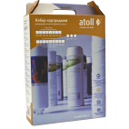 В набор № 202 входят два полипропиленновых картриджа и один угольный. В такой комплектации вы сразу можете обновить сменные элементы в системах обратного осмоса Atoll серий A-560 и A-575.