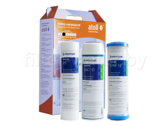 Комплект из 3-х картриджей для полной замены в проточном фильтре для очистки воды Atoll A-310e.