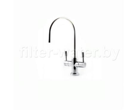 Двойной кран используется в системах обратного осмоса с минерализатором. Матовое оформление.
